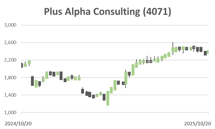Corporate result announcements for companies whose quarters close in September are about to move into full swing. Plus Alpha Consulting is one of the names for which the current-year outlook appears promising. The company plans to announce full-year results for the fiscal year ending September 2025 on 13 November (as at 20 October). At the time of the most recent Q3 (October–June) results, it revised guidance, lifting full-year operating profit from 5.6 billion yen to 6.1 billion yen (+34.7% year on year). In tandem, it raised the dividend policy guideline from “approximately 20%” of net profit to “approximately 30%”, and increased the forecast year-end dividend from 18 yen to 29 yen. Leveraging advanced technologies such as natural-language processing and data mining, the company offers services that render clients’ vast information sets visible. In Q3, the flagship “Talent Palette” (talent-management system) continued to see increases in customer numbers and unit prices, driving a marked rise in monthly recurring revenue.