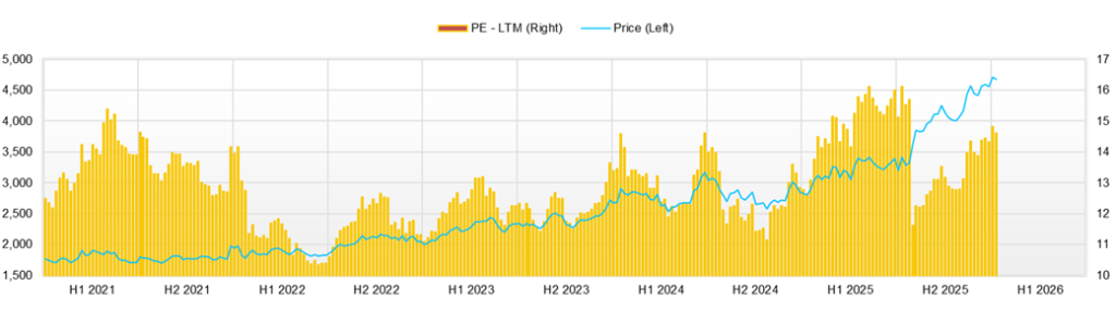 Over the past three months, the Company’s share price has been on an upward trend and has responded straightforwardly to catalysts, while the primary driver of upside is limited to the profit KPIs of new services and a deeper step into capital policy. From early September (closing price of 4,055 yen on September 1, 2025) to late December (closing price of 4,555 yen on December 26), it rose by about +12.3%, and the range was roughly 3,960 yen (closing price on September 4) to 4,700 yen (high on November 26, 2025). Recently, it reached a year-to-date high of 4,740 yen on 12/29, during which upside attempts continued.