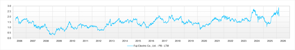Against that backdrop, from an equity investment perspective, the current issue is not the company’s quality, but how far the share price has moved ahead of that quality. At present, Fuji Electric’s core earnings base of energy, industry, and semiconductors each has a certain degree of credibility, and areas such as energy-related fields, power receiving and distribution equipment, and power supply equipment for data centres are particularly easy to associate with medium- to long-term growth expectations. Even so, the current share price appears to have already moved beyond the stage of valuing such growth opportunities and is premised on that growth continuing for a long time at quite a high level.