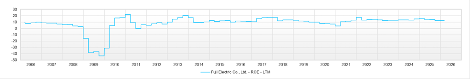 What should first be recognised in the investment case for Fuji Electric is the quality of the company itself. The fact that improvement in EBIT margin has continued over a long period since FY2009 cannot be fully explained by cyclical tailwinds alone and indicates that improvements in the business portfolio, thorough profit management, and resource allocation to growth areas have worked to a reasonable degree. Although the ROIC/WACC margin still leaves something to be desired, the company has maintained an ROE of around 10% over a long period, continued to deliver steady top-line growth, and generated decent cash flow, meaning that its fundamental corporate strength is sufficiently high. It is not an outstandingly flamboyant company, but its essential strength lies in having remained a very good company over a long period.