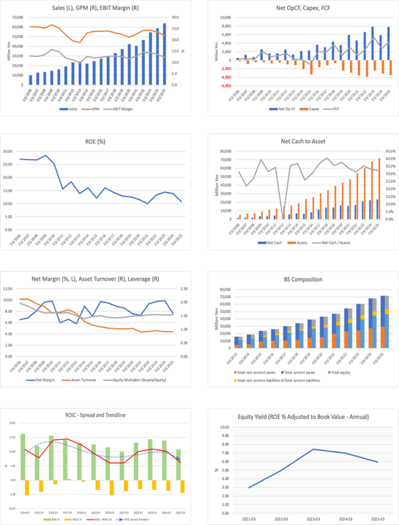 What investors should monitor going forward is not only sales growth but also three points: (1) whether supply-capacity enhancement through satellites and other measures leads to improvements in utilization rates and productivity, (2) whether AI/DX absorbs cost increases and lifts the operating profit margin, and (3) whether the policy of a total return ratio of 70% or more is executed quantitatively and continuously. If these progress simultaneously, we believe the market’s evaluation axis will shift from scale expansion, that is, sales growth, to improved profitability and capital efficiency, and a correction in the stock’s valuation will follow.