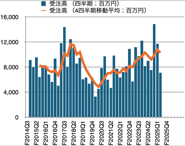 第二に、通期会社予想の達成確度が高まったこと。受注高・受注残がしっかり伸びた上、損益内容も改善していることから、通期会社予想に対する進捗は順調と推察される。同社の業績は季節性が強く下期に利益が積み上がる傾向であるが、下期は受注残案件の国内外鉄鋼向けプロセスラインや機械部品・機能材熱処理炉等の工事が順調に進捗するという見立てであり、通期計画の達成確度が高まっている。トランプ関税の影響が注意点ではあるが、当面新規のネガティブな事案は見受けられないと言えるだろう。