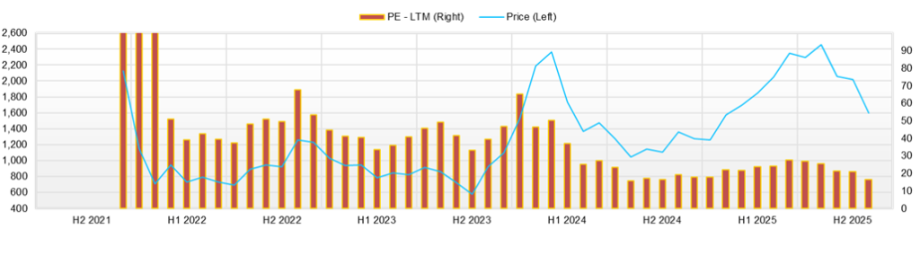 ◇ 投資判断:株価は8月高値からの調整で大きな押し目を形成。財務レバレッジや業績変動に伴う短期的なダウンサイドを意識しつつも、中長期の成長ストーリーを前提に、段階的な買い増しが妥当。