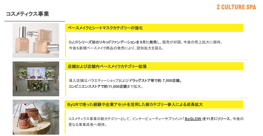 なお、コスメティクス事業の新カテゴリーとなるインナービューティーサプリメント「ByGLOW」の初動に手応えがあると会社は述べている。