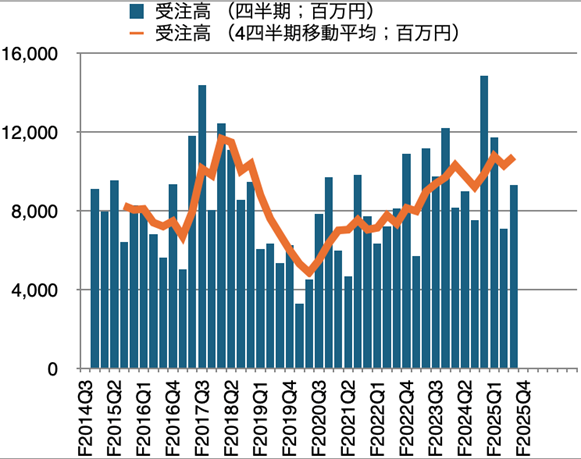 この予想は、第4四半期に前年同四半期と同水準の収益をあげれば達成可能である。足元の受注高、受注残の伸びを踏まえると、その達成確度はさらに高まったと言える。