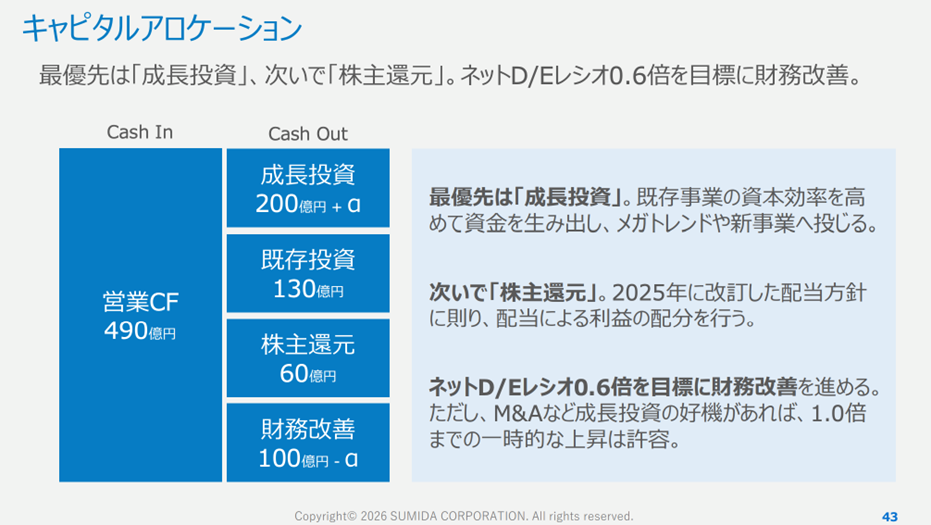 2026年に入り、同社は長期的にニッチトップ戦略を推進すると表明し、当面の施策として中期経営計画2024-2026を発表している。良好なコスト体質を基盤に、グリーンエネルギー関連をはじめ幅広くメガトレンドを案件化し、さらにニッチトップ化に向けた製品開発の布石を打っていく目論みだ。これがROICの改善、ROICスプレッドの改善を通じてPBR1倍超えにどうつながっていくのかが注目点である。