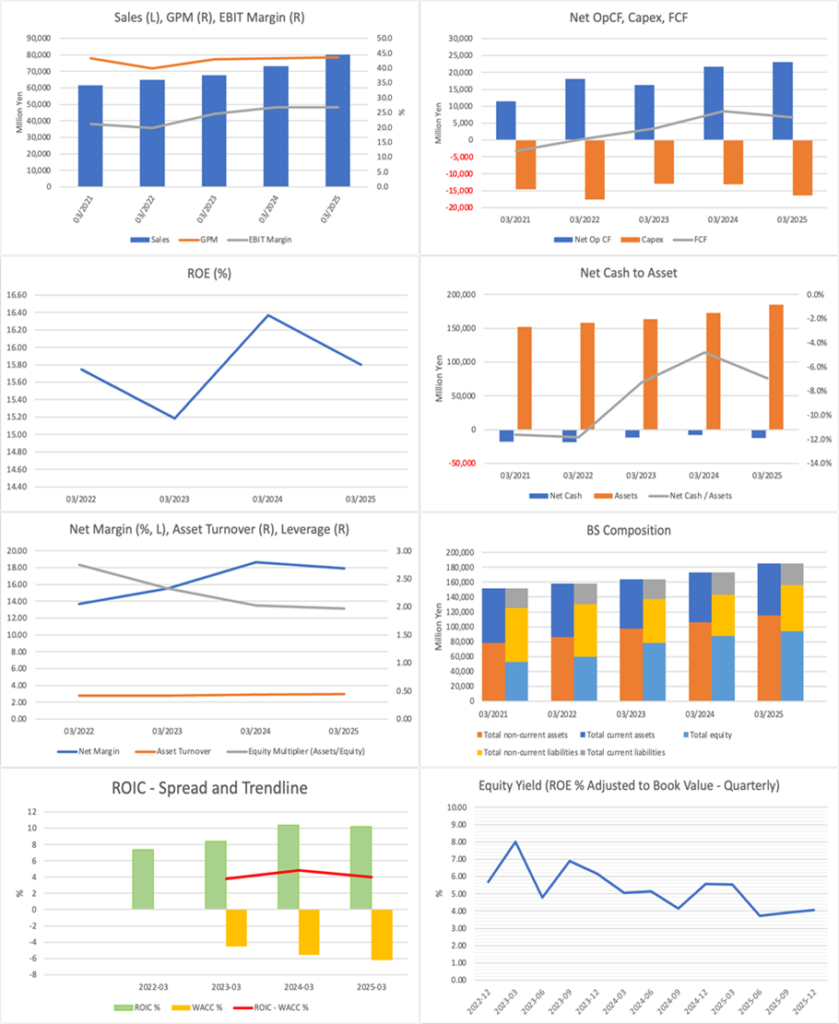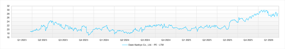 適正株価との比較では、市場の見方はかなり楽観的であると考えられる。PBR法、DCF法、ROIC法の三法でみた適正株価の中心は概ね2,900円前後で、現在の株価水準はそのレンジを明確に上回る。市場は同社の優位性を高く評価しているわけだが、問題は、その高い評価に見合う利益成長を同社が今後も継続的に示せるかどうかに尽きる。