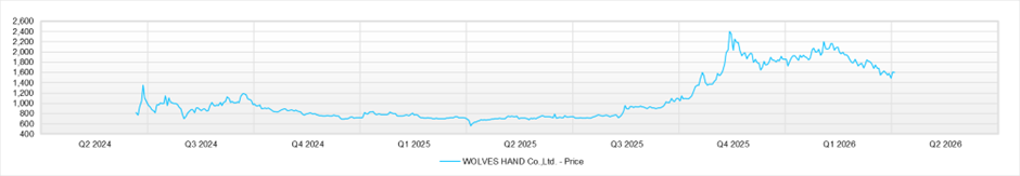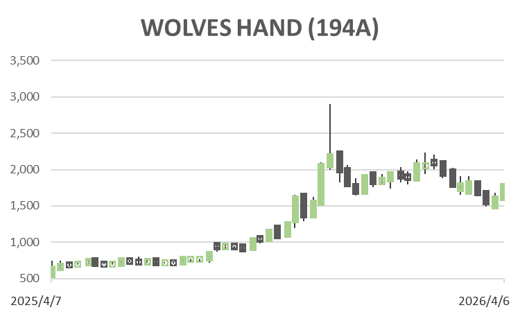 Sell on Strength。ただし、今後も高い利益成長が続き、M&A後のPMIが規律あるかたちで定着し、財務負担の軽減が進むなら、現在の株価水準はなお正当化され、さらに高いレンジで評価される余地もある。WOLVES HANDは、一次診療から高度医療までを一社完結で担う体制、若手獣医師の育成力、事業承継M&Aの受け皿としての強みを持つ、日本では希少な動物医療グループであり、事業の質そのものは高い。実際、FY6/2026中間期は大幅増益となり、通期会社計画も上方修正された。しかしながら、株価にはすでに相応の評価が織り込まれており、適正株価の中央値対比では大きな割安感はない。加えて、のれん、M&A依存度、浮動株の薄さ、大株主売却懸念といった論点も残る。したがって現時点では、事業の良さを認めつつも、株価が強含む局面では利益確定が妥当と考える。